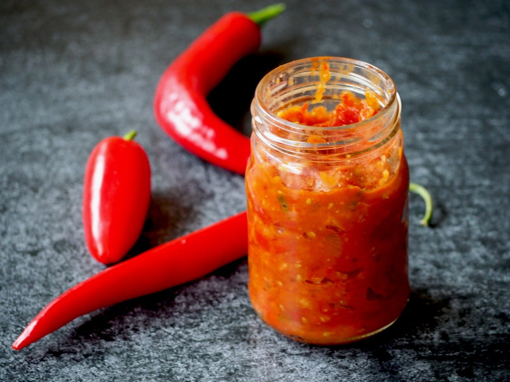 Zeer hete sambal met de Madame Jeanette peper, boordevol smaak! Lekker bij de tosti, als hete dip bij de borrel of door de kip.